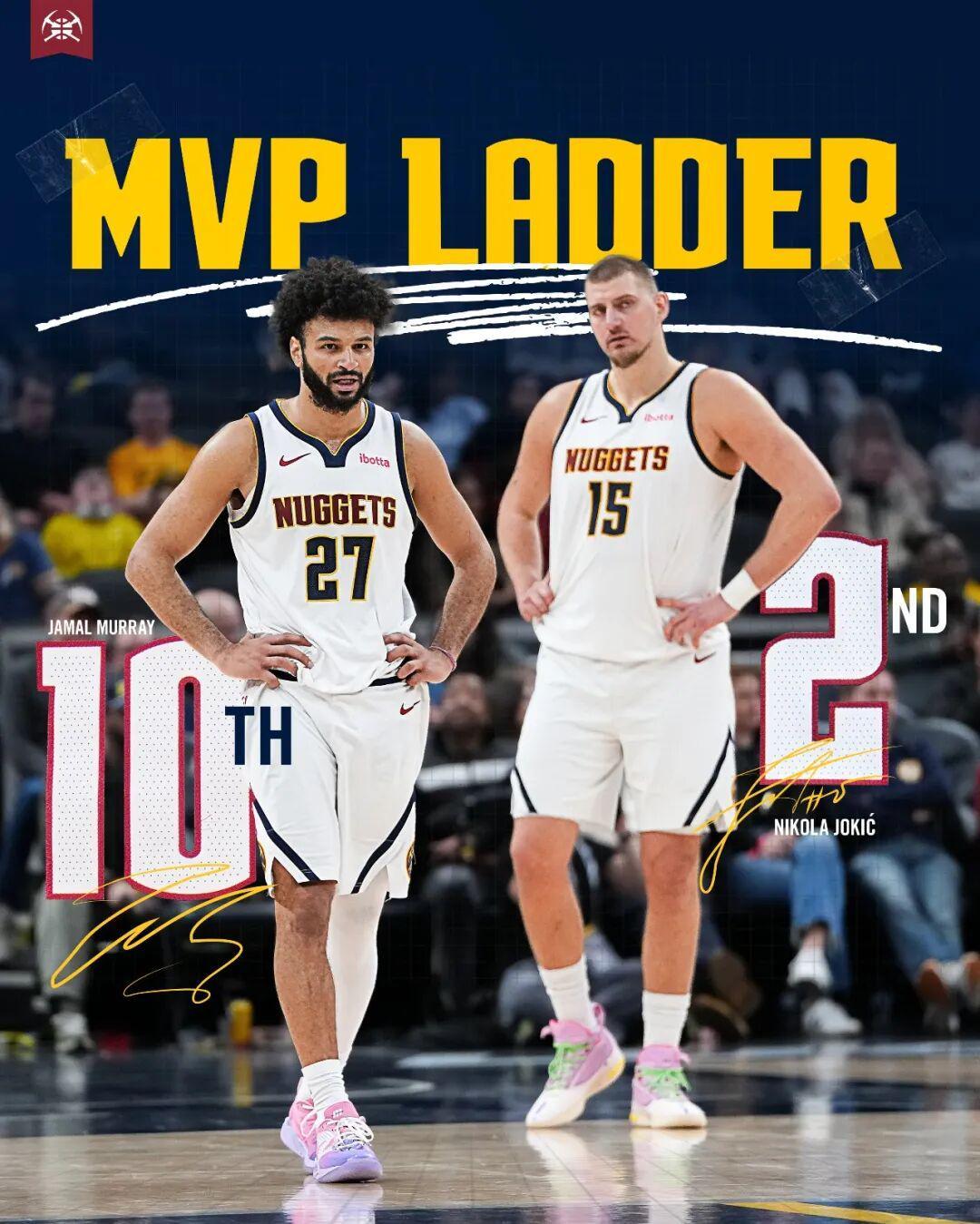 以及值得注意的,MVP前十当中只有约基奇和穆雷是队友,现役联盟最强的二人组?感觉一点毛病都没有,你们觉得呢?